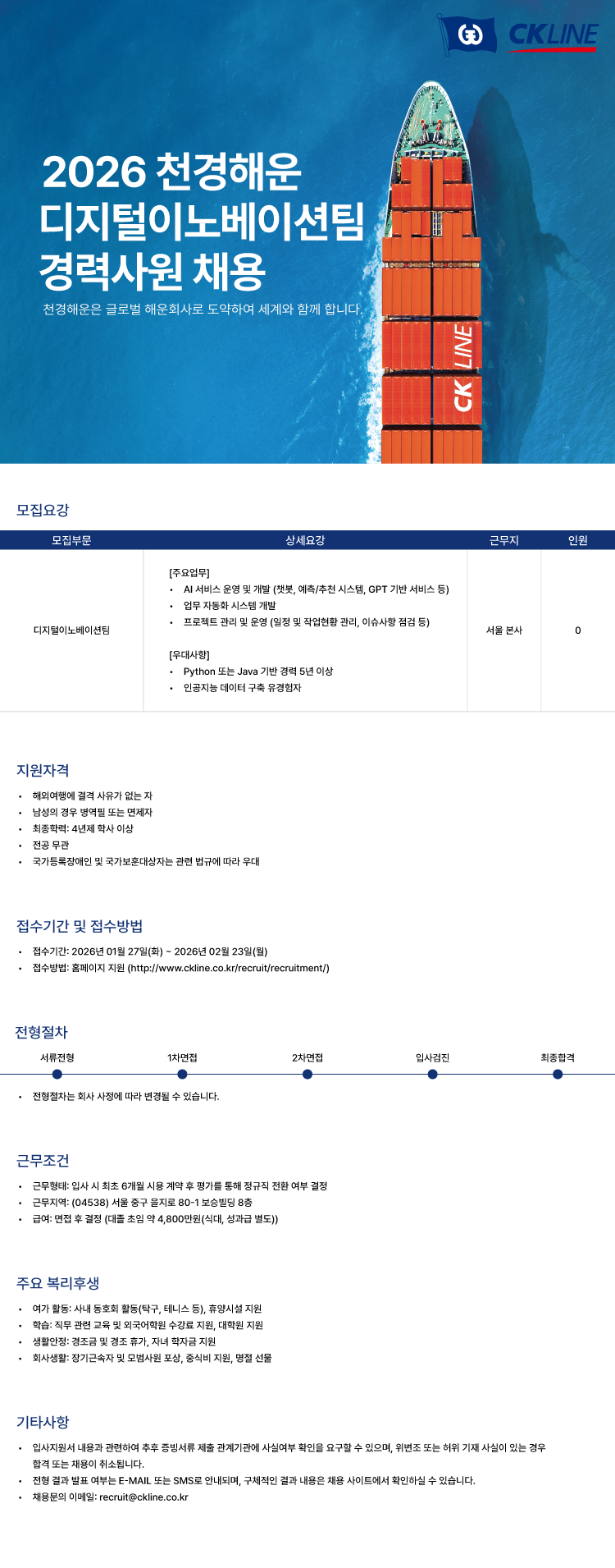 '천경해운 주식회사' 은 (이하 '회사'는) 고객님의 개인정보를 중요시하며, "정보통신망 이용촉진 및 정보보호" 에 관한 법률을 준수하고 있습니다.