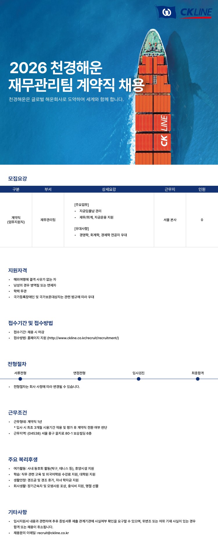 문의 recruit@ckline.co.kr, 02-3788-6874