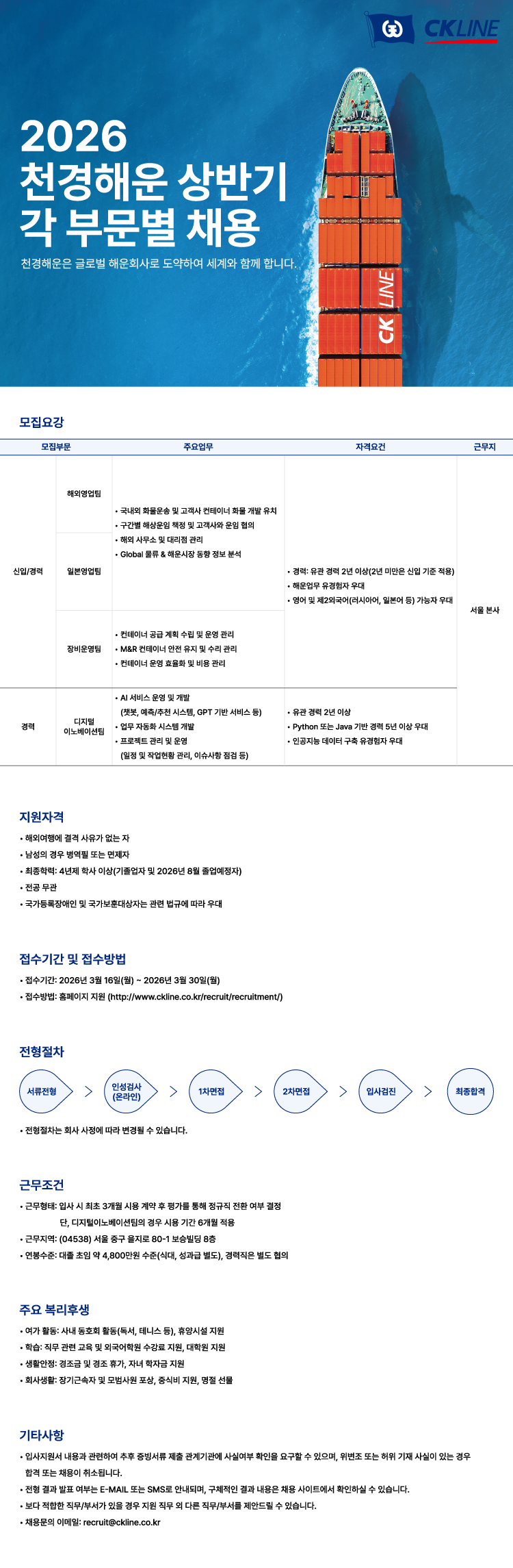 '천경해운 주식회사' 은 (이하 '회사'는) 고객님의 개인정보를 중요시하며, "정보통신망 이용촉진 및 정보보호" 에 관한 법률을 준수하고 있습니다.
