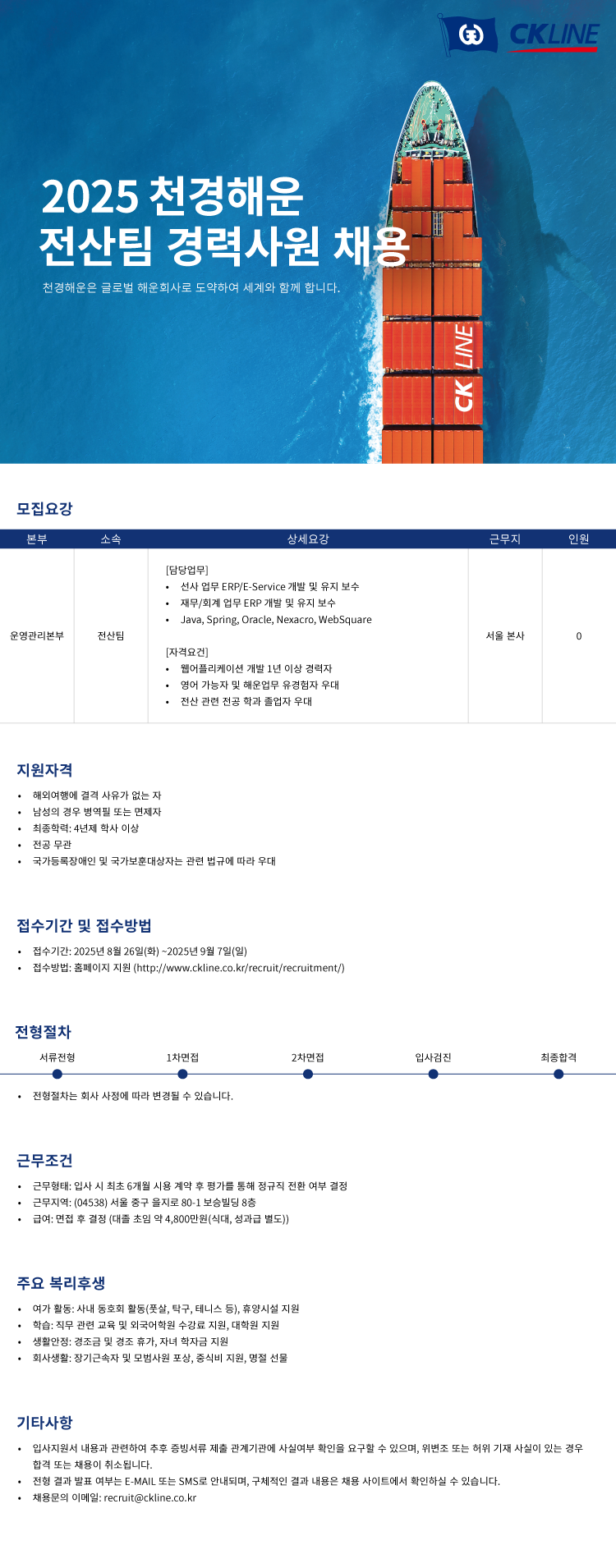 문의 recruit@ckline.co.kr, 02-3788-6874